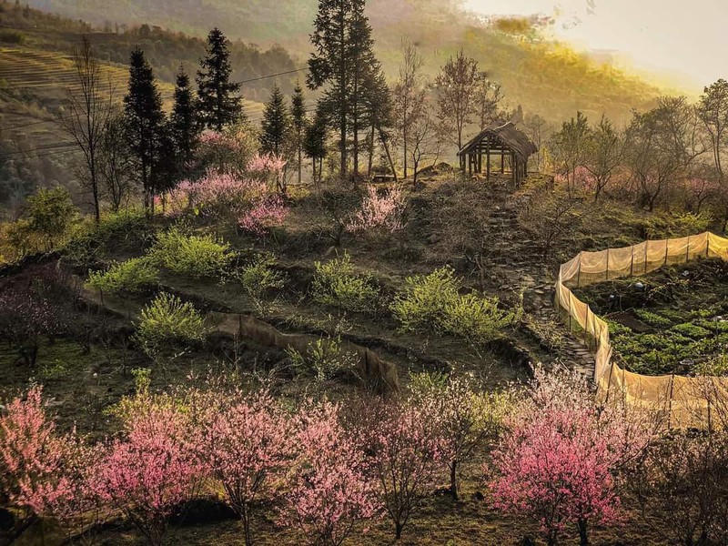 Hoa đào nở muộn rực rỡ núi rừng Y Tý. Ảnh: Ngọc Bằng