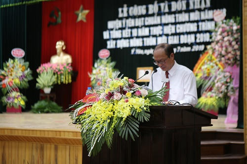 Ông Hoàng Xuân Thành - Chủ tịch UBND huyện Ý Yên phát biểu tại Lễ Công bố và công nhận huyện Ý Yên đạt chuẩn NTM.