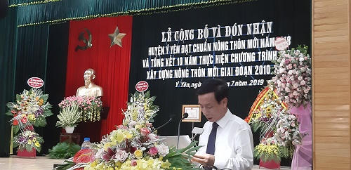 Với những thành tựu đã đạt được trong phong trào xây dựng nông thôn mới. Ngày 13/7/2019 Cấp Ủy đảng, Chính quyền và nhân dân huyện Ý Yên đã vinh dự được Thủ tướng chính phủ trao bằng chứng nhận huyện đạt chuẩn nông thôn mới.