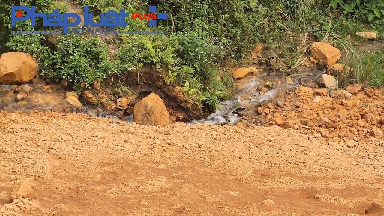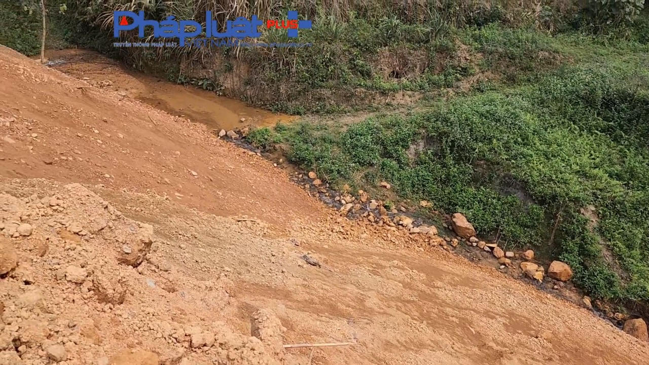 Tại thôn Đoàn Kết đoạn giáp ranh với xã Mỏ Vàng cũng có tới hàng trăm mét khe suối bị tắc nghẽn do đất thải đổ tràn xuống, chưa kể tới mùa mưa lũ thì nguy cơ lở sạt còn nghiêm trọng hơn rất nhiều.