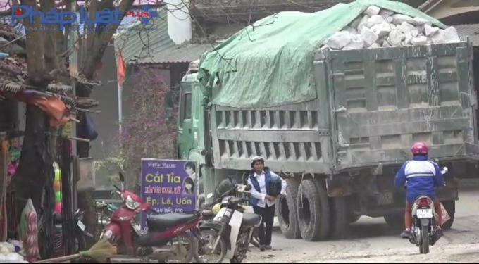 Theo quan sát của phóng viên Pháp luật Plus, những xe đá có ngọn này lặp đi lặp lại hành trình tới 3 - 4 chuyến trong ngày mà không hề gặp bất cứ lực lượng nào tuần tra ngăn chặn. Nguy hiểm hơn ở phía đuôi xe, lòi ra khỏi tấm bạt đậy chật hẹp là rất nhiều phiến đá hộc đặt hớ hênh như những cái bẫy, có thể đổ ụp xuống đường bất cứ lúc nào.