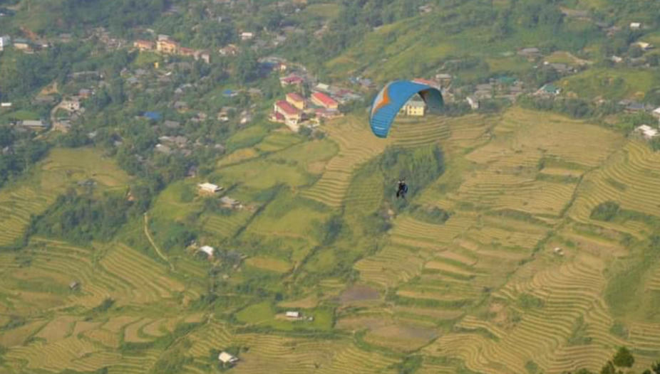 Thả dù ở Mù Cang Chải (Yên Bái) từ trên cao nhìn xuống.
