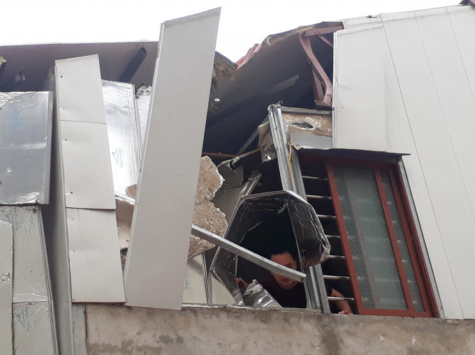 Đặc biệt, bình khí khá nặng bay đi khỏi hiện trường khoảng 100m, rơi xuống làm bục mái tôn tầng 3 một hộ dân, may mắn không có ai thương vong.