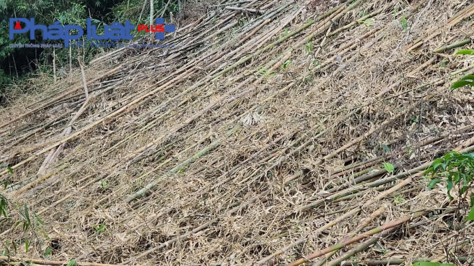 Tại đây nhiều cây gỗ rừng tự nhiên bị lật gốc, tạo thành con đường rộng 5-7 m, dài hàng km và những vạt rừng vầu bị phát trụi đang chờ khô để đốt.