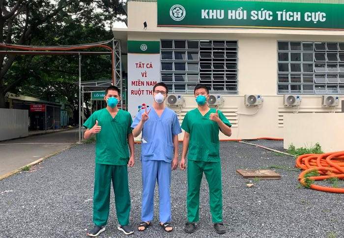 BS trẻ Đỗ Doãn Bách (ngoài cùng bên phải) trong chuyến công tác chống dịch Covid-19 tại TP HCM.